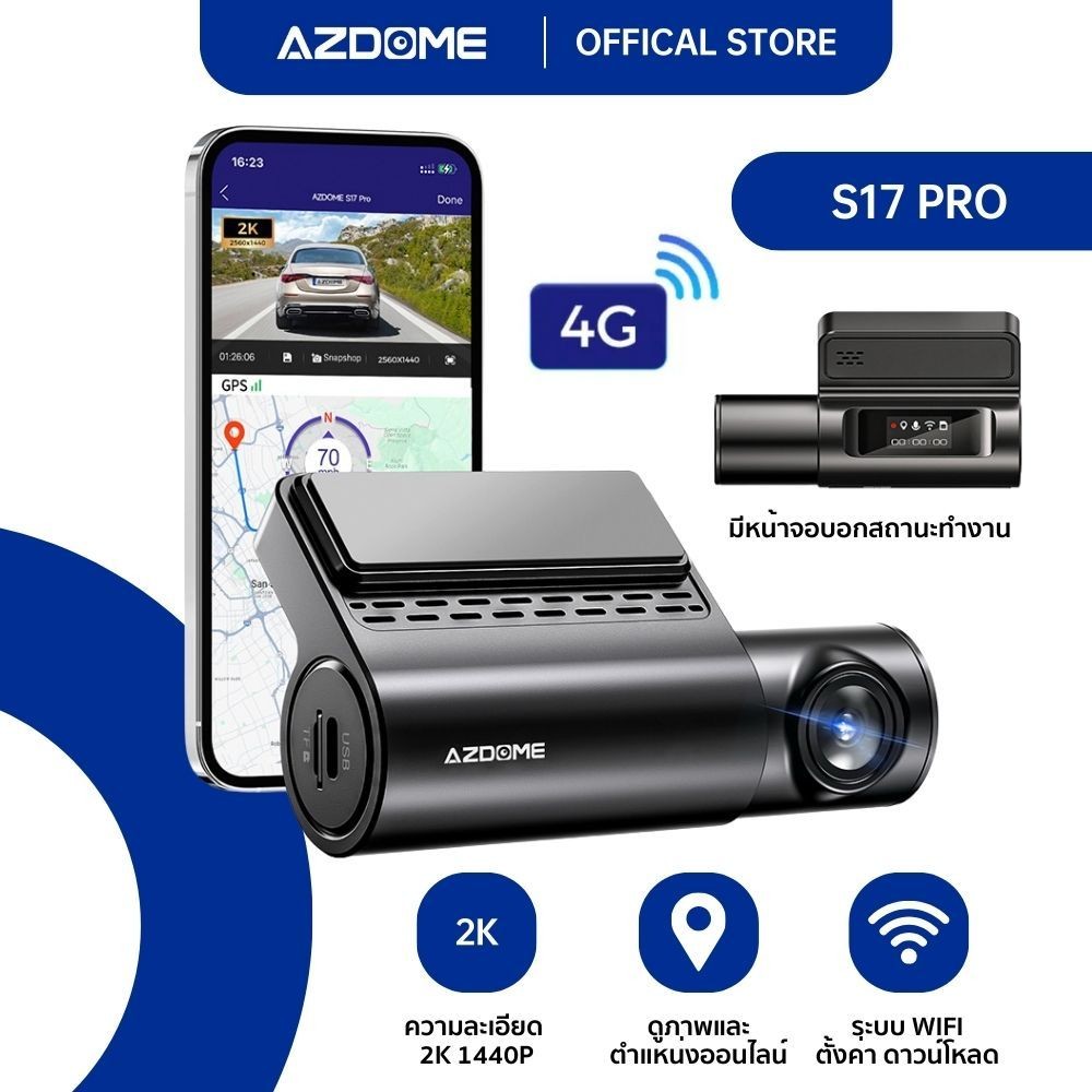 AZDOME S17 PRO กล้องติดรถยนต์ 2K 4G ดูออนไลน์ Real Time คมชัด ทนแดด GPS ในตัว