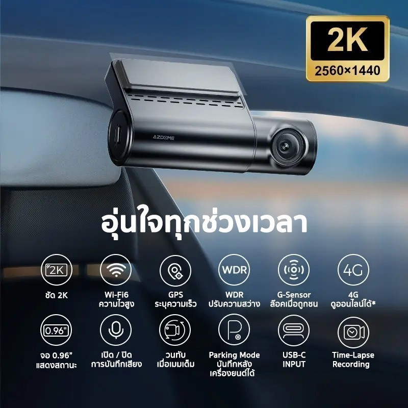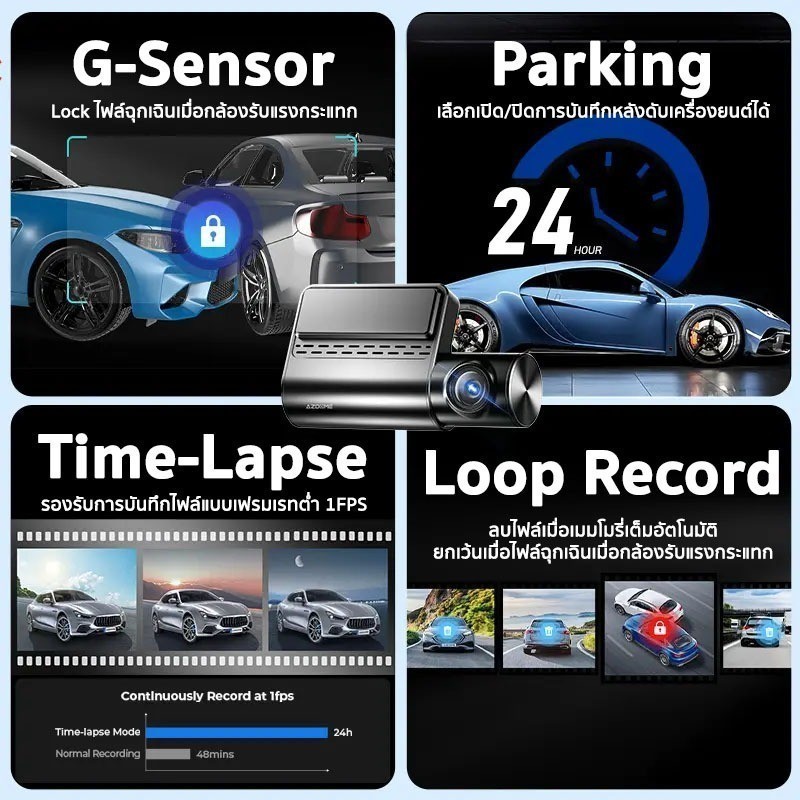 AZDOME S17 PRO กล้องติดรถ 2K 4G ดูออนไลน์ได้ มุมกว้าง 150 องศา WIFI GPS ทนแดดด้วย Capacitor รับประกัน 1 ปี