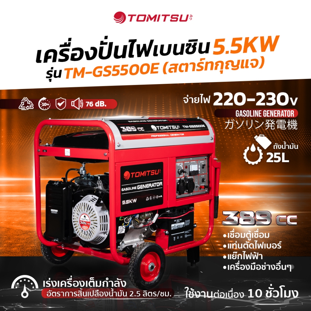 ไม่ต้องทนอยู่ในความมืดอีกต่อไป! ลงทุนกับ เครื่องปั่นไฟ TOMITSU TM-7500E วันนี้ เพื่อพลังงานที่ต่อเนื่องและมั่นคงในทุกสถานการณ์!