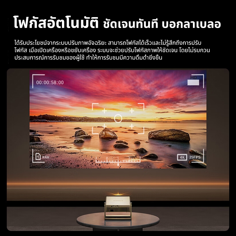 แค่เสียบปลั๊ก! ไม่ต้องปรับมือ! ระบบอัจฉริยะจะจัดการให้ภาพชัดและตรงเองทั้งหมด ทั้งโฟกัสอัตโนมัติและการปรับแก้ภาพเอียงอัตโนมัติ ทำให้คุณพร้อมดูหนัง ดูซีรีส์จาก YouTube, Netflix หรือแม้แต่เล่นเกมได้อย่างรวดเร็วและราบรื่นด้วยชิปประสิทธิภาพสูงและหน่วยความจำขนาดใหญ่ เป็น เครื่องฉายโปรเจคเตอร์พกพา ที่มอบความบันเทิงระดับ 4K ให้คุณได้ทุกที่ ทุกเวลาอย่างแท้จริง