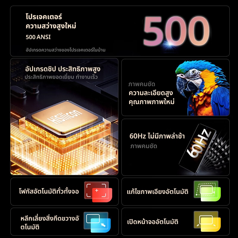 | ความสว่าง | 500 ANSI Lumens (ได้รับการรับรองจาก SGS) |
