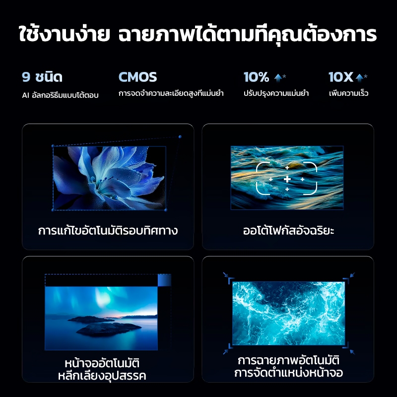 นี่คือ โปรเจคเตอร์โฮมเธียเตอร์ ที่มาพร้อมกับระบบ Android TV ในตัว ให้คุณเข้าถึง Netflix, Youtube และ Google Play ได้ทันที ไม่ต้องต่อกล่องเพิ่ม! ที่สำคัญที่สุดคือระบบอัจฉริยะแบบ Smart Full-Automatic ไม่ว่าจะเป็นการ โฟกัสอัตโนมัติ การ แก้ไขภาพสี่เหลี่ยมคางหมูอัตโนมัติ หรือแม้แต่ฟังก์ชัน หลีกเลี่ยงสิ่งกีดขวางอัจฉริยะ ที่จะช่วยหาตำแหน่งฉายที่ดีที่สุดบนผนังให้คุณโดยอัตโนมัติ! เพียงแค่เสียบปลั๊ก ภาพก็ชัดตรงเป๊ะในพริบตา คุณจะได้ดูหนังจบไปหนึ่งตอนในขณะที่คนอื่นยังคงเสียเวลาปรับภาพอยู่เลย