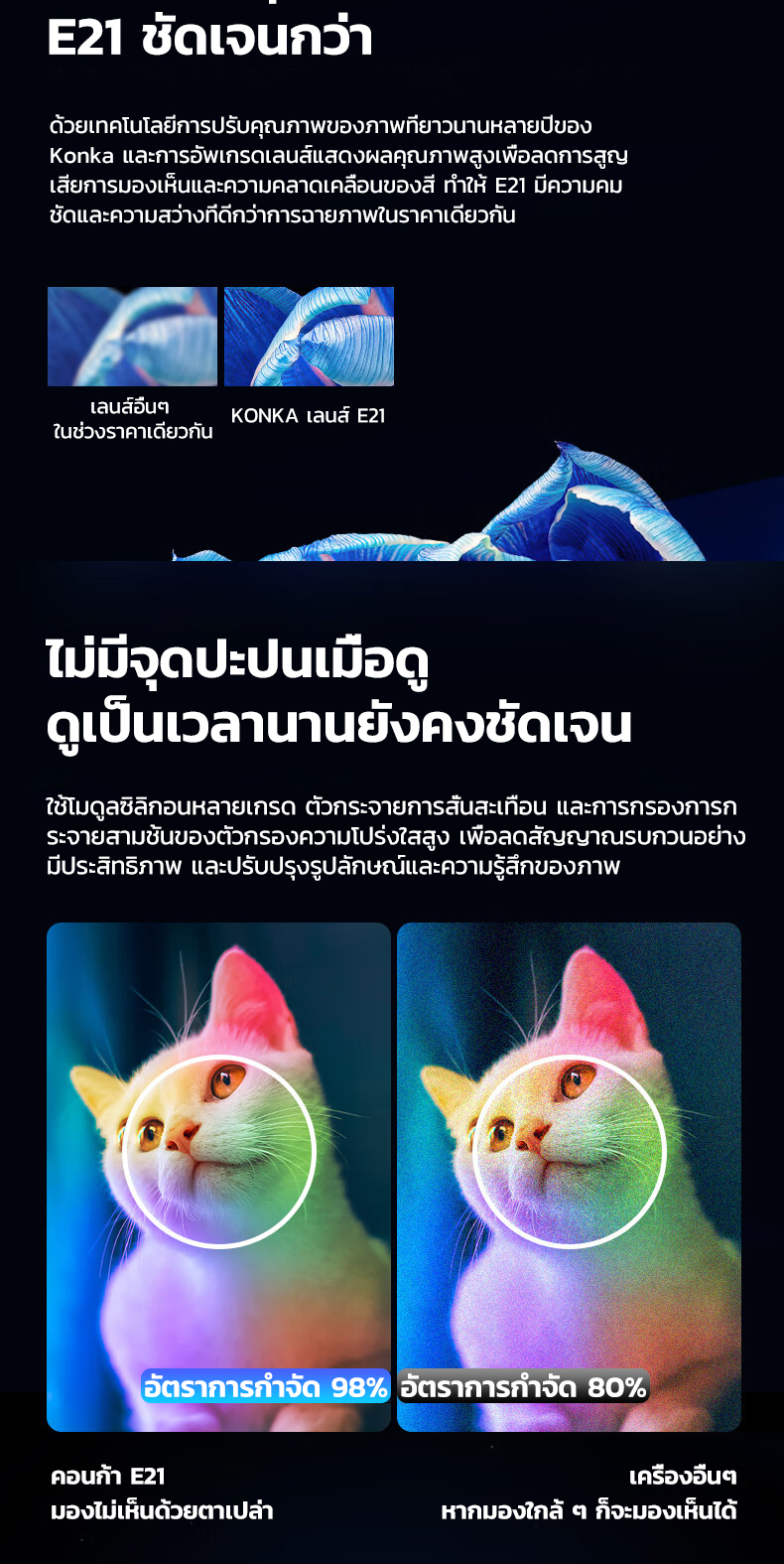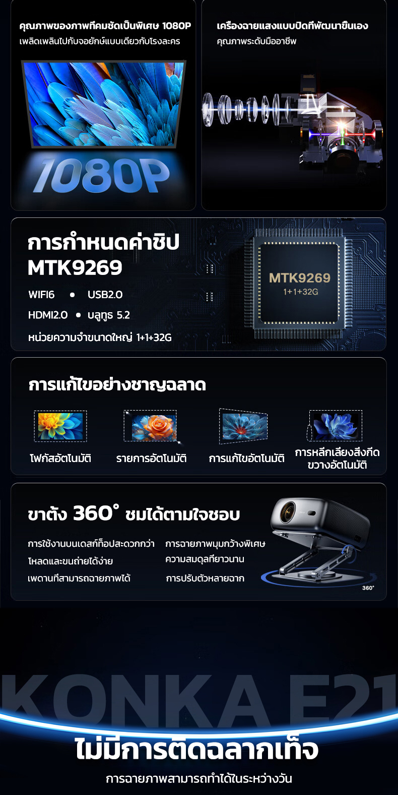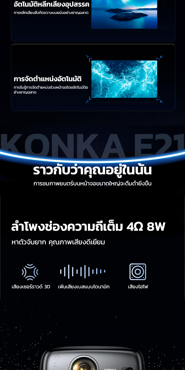 เบื่อไหมกับ โปรเจคเตอร์ รุ่นเก่าที่ต้องเสียเวลาปรับภาพเป็นชั่วโมง? หรือเจอปัญหาฝุ่นเกาะจนภาพเป็นจุดดำ? ได้เวลาอัปเกรดสู่ประสบการณ์ความบันเทิงระดับโรงภาพยนตร์ที่ไม่ต้องง้อความมืด! KONKA E21 มินิโปรเจคเตอร์ Android TV เครื่องนี้ คือคำตอบของทุกปัญหา เปลี่ยนห้องนั่งเล่นธรรมดาให้เป็น โฮมเธียเตอร์ สุดล้ำ ด้วยระบบอัจฉริยะที่พร้อมฉายภาพคมชัด 4K ทันทีที่คุณเปิดเครื่อง! อย่ารอช้า! เพราะสินค้าคุณภาพระดับนี้พร้อมให้คุณเป็นเจ้าของแล้วก่อนใคร