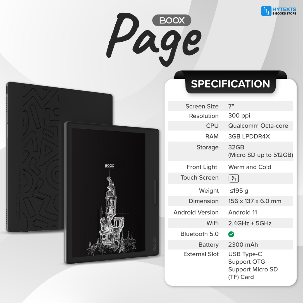 BOOX PAGE คือ เครื่องอ่านอีบุ๊ค สุดล้ำที่ออกแบบมาเพื่อคนรักการอ่านโดยเฉพาะ ด้วยหน้าจอ E-Ink Carta 1200 ขนาด 7 นิ้ว ที่มีความละเอียดสูงถึง 300 ppi ทำให้ตัวอักษรคมชัดเหมือนอ่านจากกระดาษจริง และยังช่วยถนอมสายตา ลดอาการเมื่อยล้าจากการจ้องหน้าจอเป็นเวลานานๆ ที่สำคัญคือมีไฟหน้าจอที่สามารถปรับได้ทั้งโทนอุ่นและโทนเย็น ให้คุณอ่านสบายตาได้ทุกสภาพแสง ไม่ว่าจะในที่มืดหรือที่สว่างจ้า